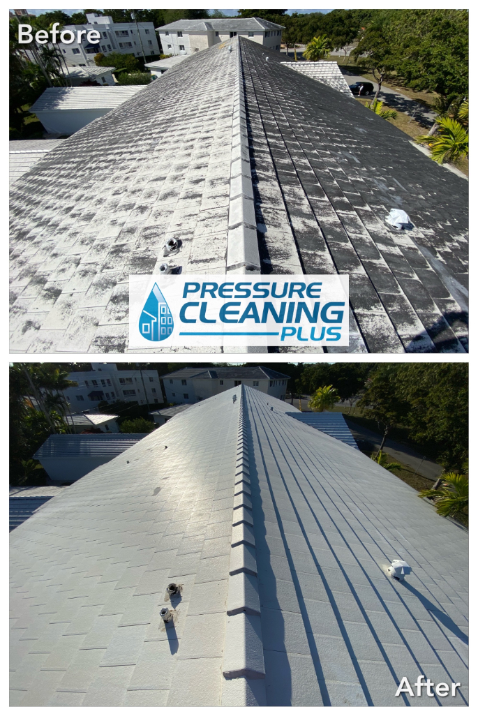 White roofs can be very challenging to clean. On one hand you can power wash them but that could potentially strip the white paint and break the roof tiles. On the other you could Softwash the roof which is recommended by the roofing manufacturers and is a low pressure treatment that gently cleans away mold and algae without causing harm to your paint or tiles. Our company specializes in soft washing in the Miami Florida area. Our team of skilled technicians have been trained to perfectly clean any type of roof no matter how old it is. If you're curious about your roof or would like a free quote give us a call at 786-747-0777 for more information. This specific job was preformed in Coral Gables FL.