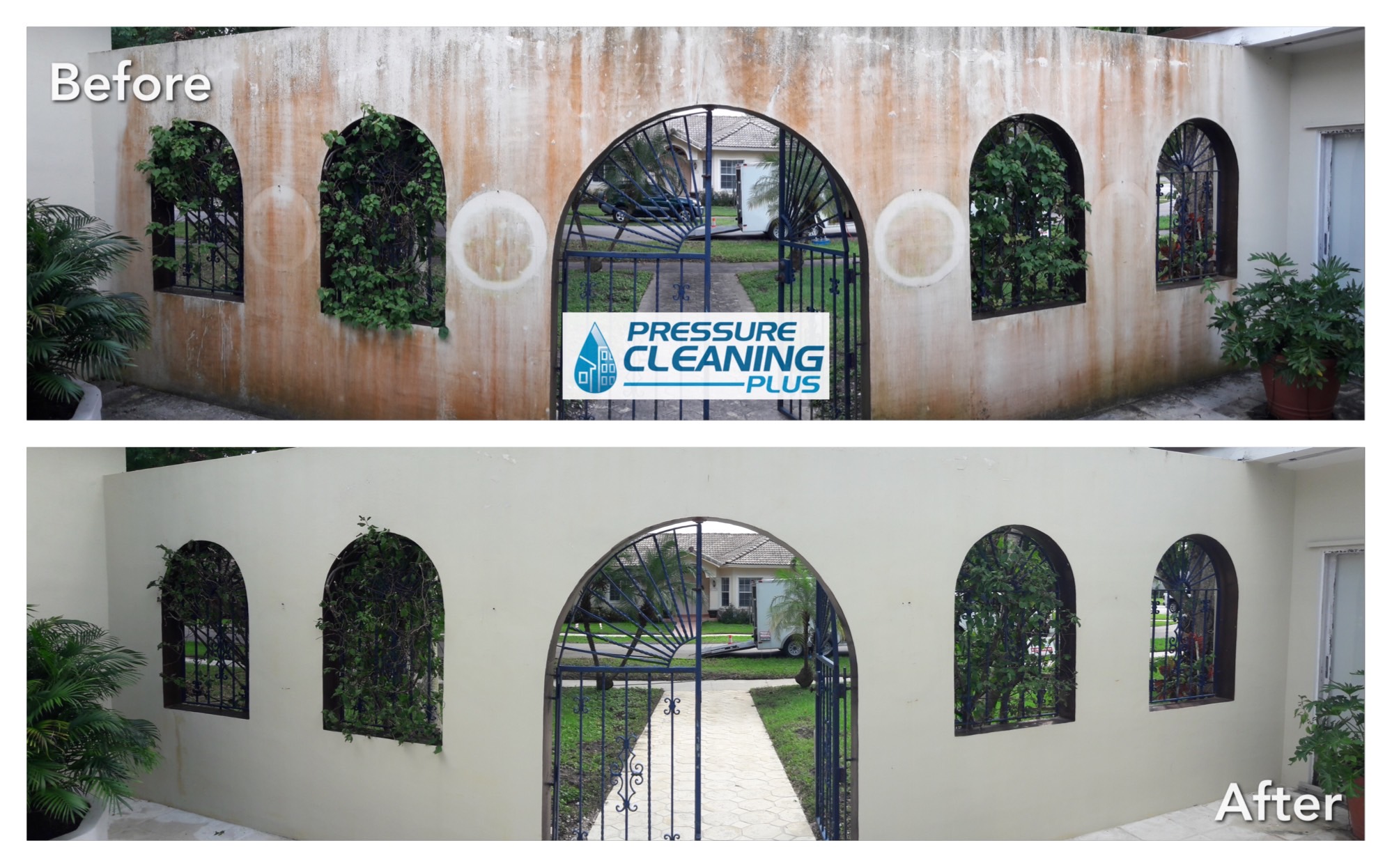 We used our soft washing method to clean the stucco on this beautiful Coral Gables home. Our low pressure method prevents any damage to the surface, while still yielding beautiful results.